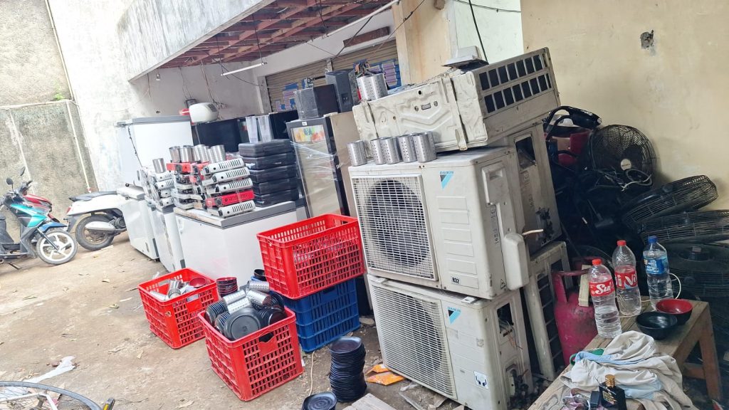 Alat-alat elektronik bekas, seperti : TV, radio, kipas angin, kulkas, kabel, mesin HP, panel telkom, genset, dll